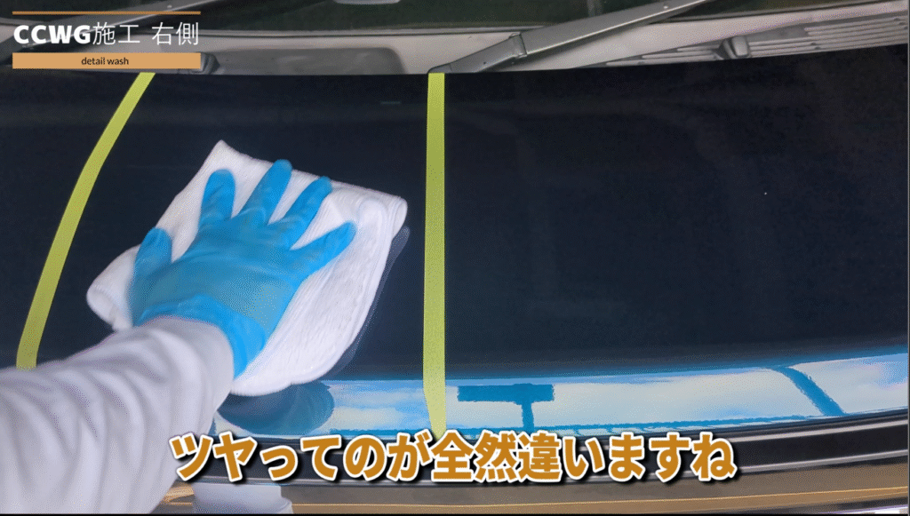 施工した後に出るコーティングの跡、これがあると白ボケたり撥水性が悪くなることがあるよ