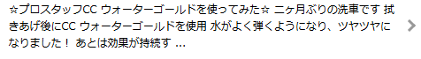 ここまでCCウォーターゴールドの艶と撥水力について書いてきたけど
