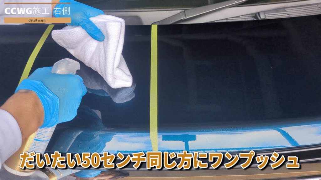 水をふき取ると同時に施工するので、ボディから水分がなくなるように